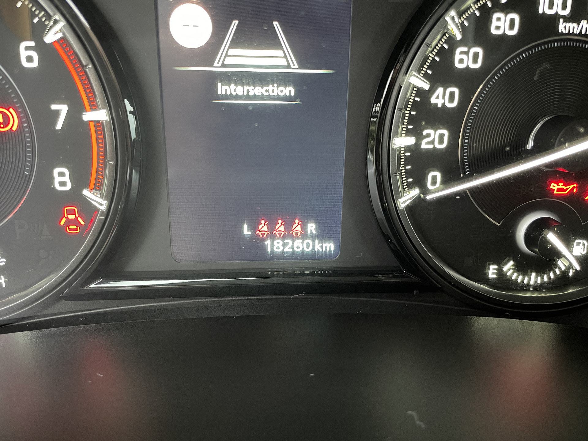 Upozornění na nezapnuté bezpečnostní pásy vpředu a vzadu